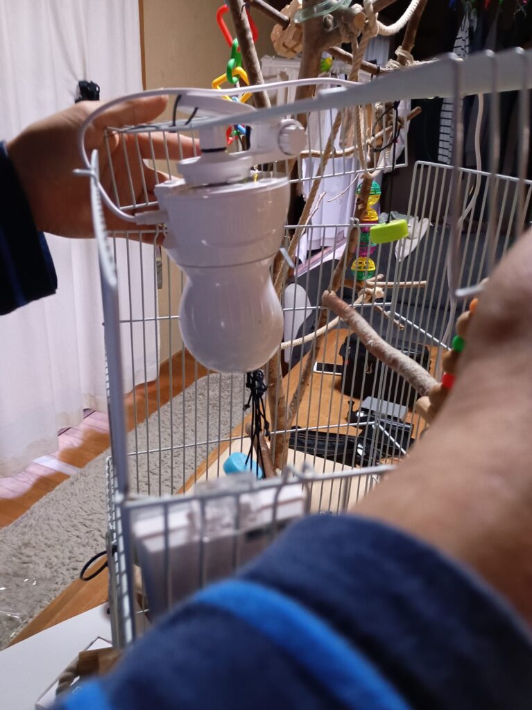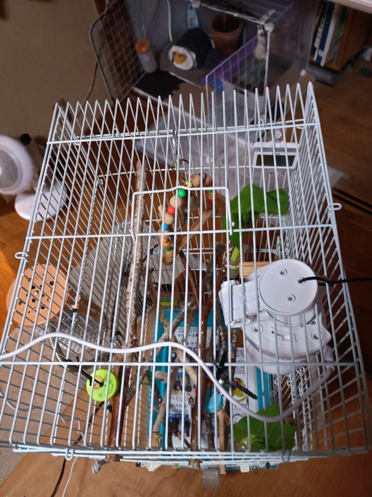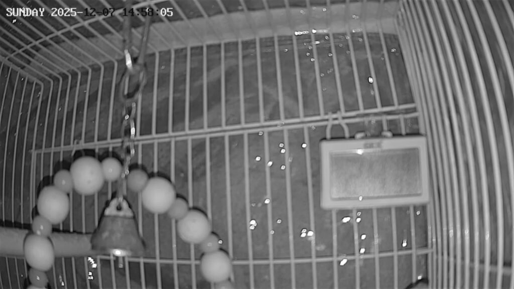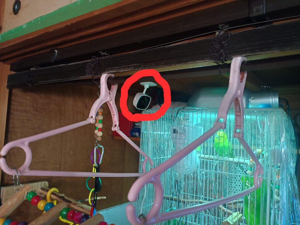 先日、セキセイインコのルルちゃんが一時、体調を崩した時、安静を保つために別のケージで休ませました。その時に、カメちゃんのペットカメラを拝借し、夜間も観察できるようにしました。