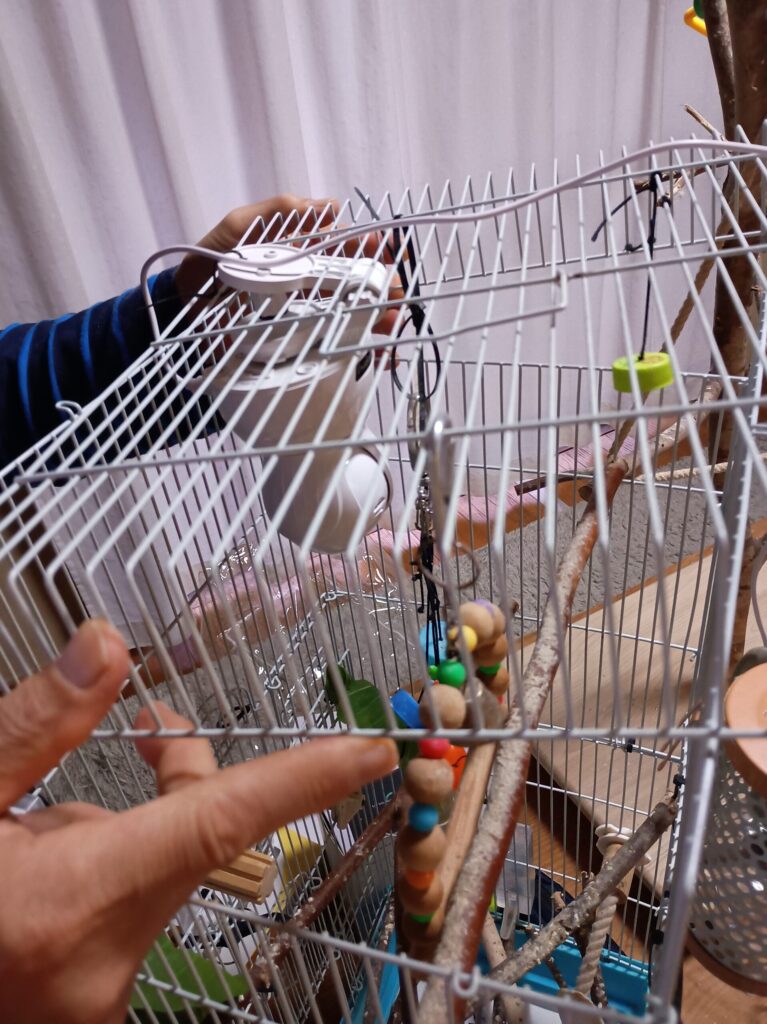 インコちゃんはとても警戒心が強く、初めて見るものは怖がって近づかないので大丈夫かな??と心配しましたが、意外と怖がりませんでした。