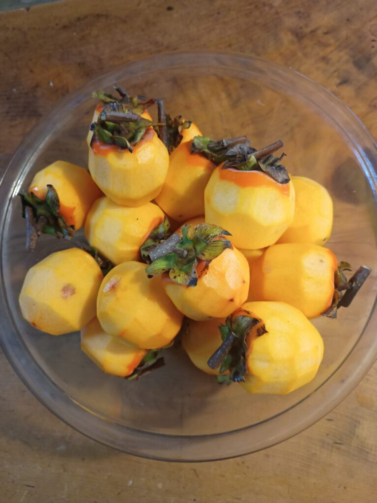 なぜ、渋柿かと言うと、元々渋柿の方が糖度が高く、さらに干す工程で渋み成分のタンニンが不溶化する(渋抜きされる)ためです。これにより、もともとの高い糖分が凝縮されて濃厚な甘さになるからです。