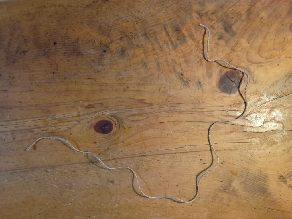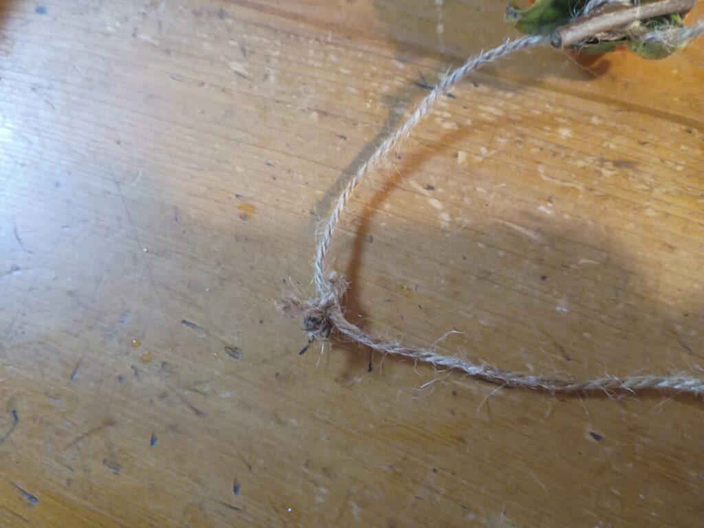 紐にくくりつけたのが2本できたら紐のはしをくくります。