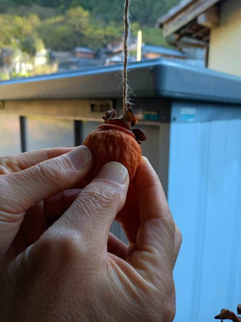 硬めの干し柿が好きな人は長めに、柔らかめが好きな人は短めに干すことで、好みの食感に仕上げることができるのも手作りならではですね(^^♪
