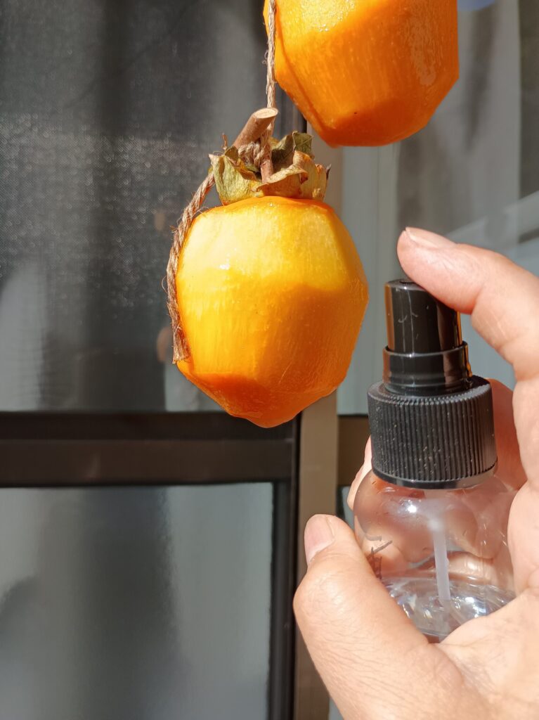 カビ予防として干す時に焼酎やホワイトリカーの入った霧吹きをしっかり吹きかけます。